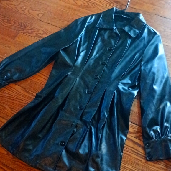 black leather dress with buttons size 0xl no stretch, never worn