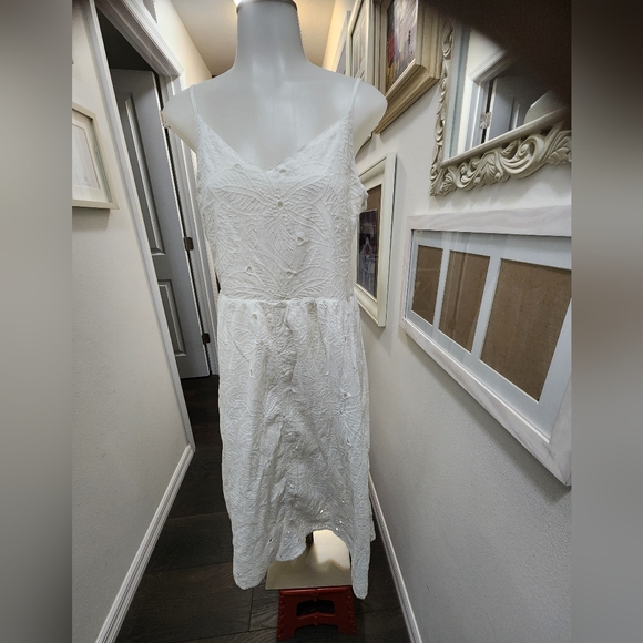 White SUN TANK DRESS COTTON SLIP UNDERNEATH..GREAT LENGTH ADJUSTABLE STRAPS..PRICED TO SELL
