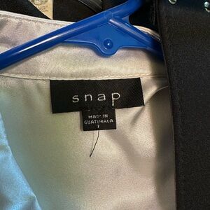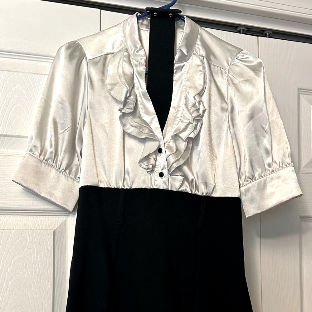 Satin white top. Crepe skirt. Just below the knee length. Comes with belt. Size 7