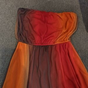 this is a super sexy brown red orange dress strapless the side goes up a little further than the other