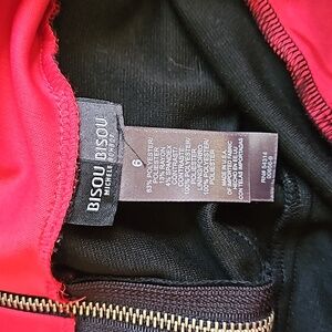 Upper silky red, cotton lower half black bottom dress. very cute, size 6. shoulders were hemmed by hand to make fit better, so it may run a touch small. padded upper half.