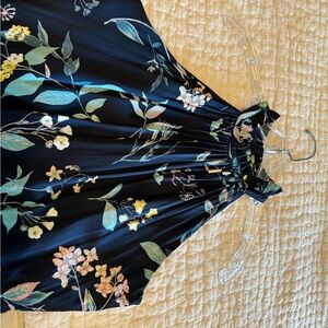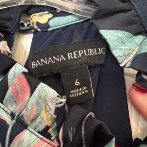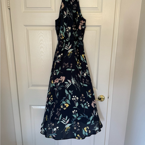 Banana Republic size 6 dress. Navy floral print halter style dress. Zipper in the back and lined. 100% polyester and machine washable.