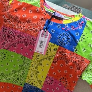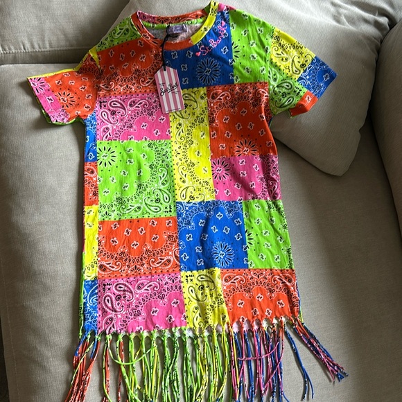 Patchwork dress with fringes. New. Snug fit for my girl.