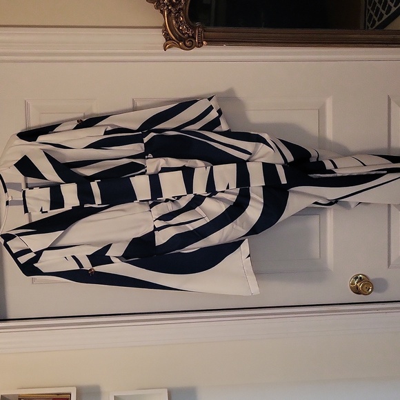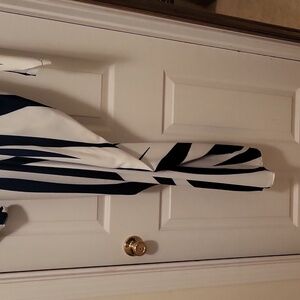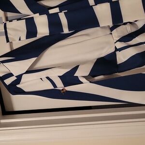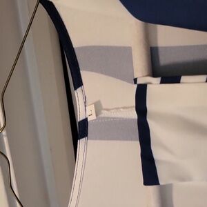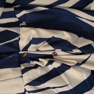 new, without tags, never worn. navy/white dress, sleeves can be worn down or roll them up, with tie belt