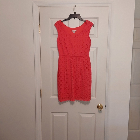 Orange Dress with lace type overlay. Size 6 Petite