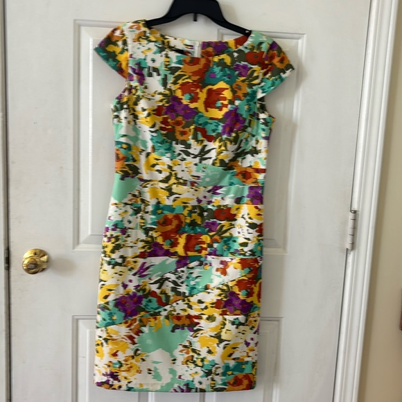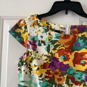 ACB colorful back zip, cap sleeve, scoop neck, poly spandex, sz 10, like new, multi colored floral print