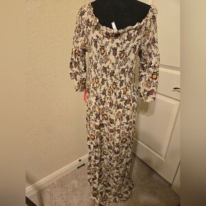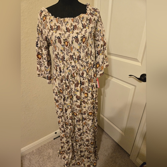 Beautiful multi-colored dress with split and elastic bust. p2p stretches 17"-24".