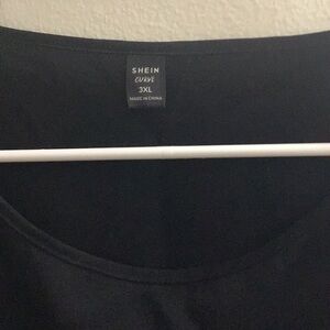 Dress from SHEIN . The dress is 3x which is about 18-20. It is a black knee length shift dress with elbow length sleeves that bow tie. It can be dressed up or down. Measurements upon request. New, never worn although no tags