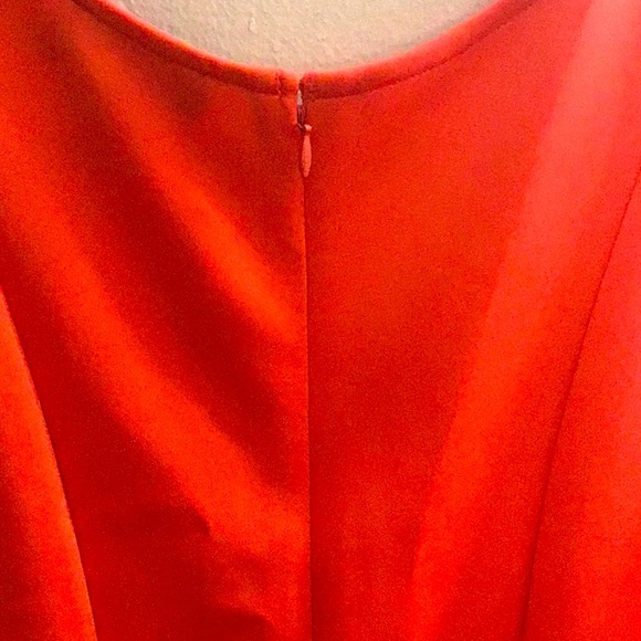 Coral colored fit- n- flared dress with same colored decorative fringe at the bottom. Worn once and it is now it no longer fits. My gain is your gain. Smoke free, pet friendly home. Measurements upon request