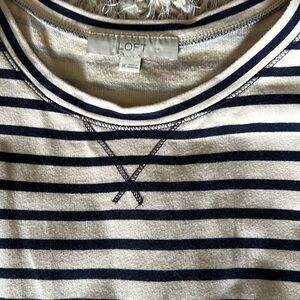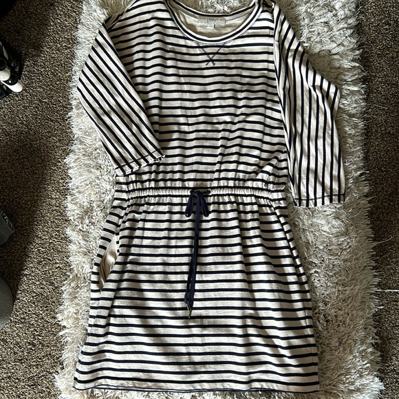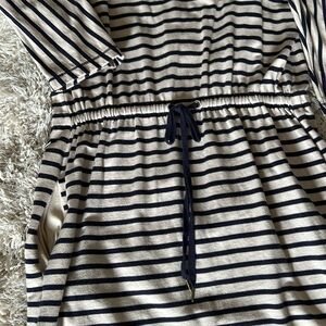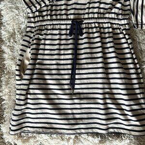 Navy cream striped dress with side pockets and tie waist string