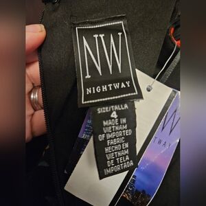 Nightway Floral Maxi Dress. Black with floral pattern. Slit in the front.