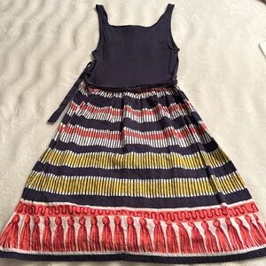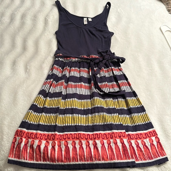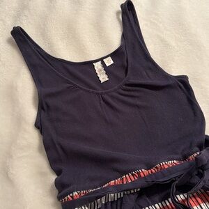 Navy tank top dress purchased from Anthropologie size medium. The top is a ribbed tank top material and the bottom has the cutest print. Lightweight and has a tie waist that is connected in the back. GUC and super cute! Smoke free, pet friendly home!