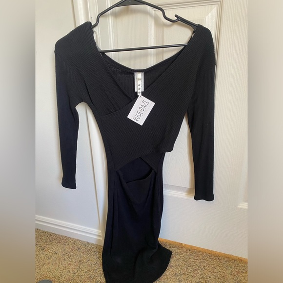 Brand new dress from Rosie daze boutique (now closed). Sweater material, fitted, short, cutout on belly