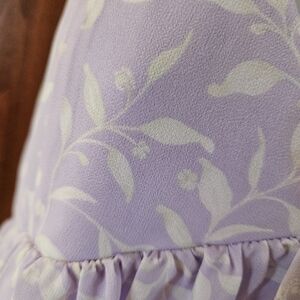 F21 Dress. The color is lavender. Like New. It is lined and the outer shell is a very light chiffon like material. V neck front and back.