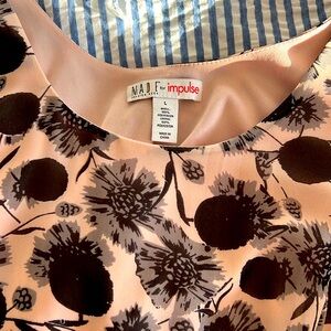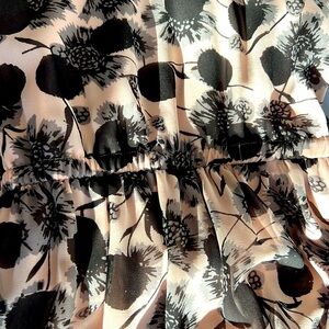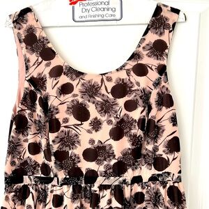 Soft pink and black dress. 44 inches from shoulder to hem. Elastic at back waste. Fully lined. I’m good condition.