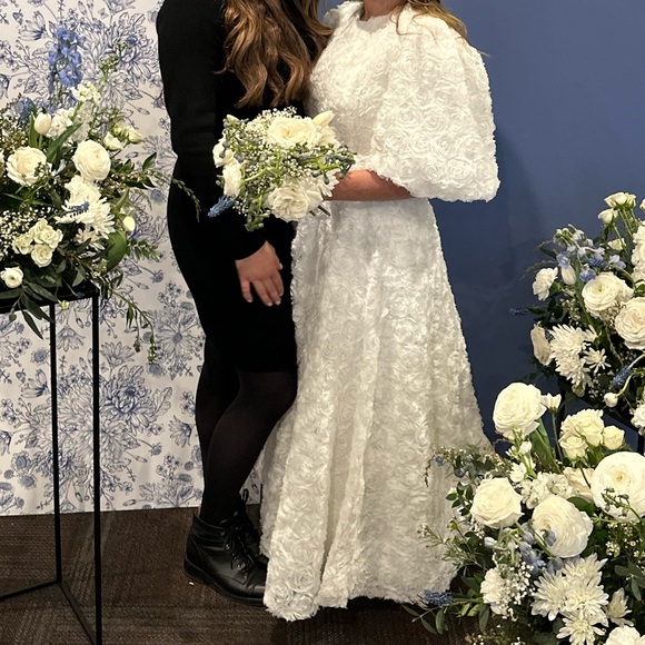 Worn this dress once to my bridal shower, it’s a beautiful princess dress for a wedding, prom or bridal shower.