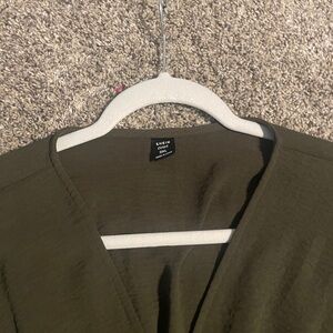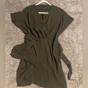 Worn twice. Still in perfect shape. The tie in the front gives you the perfect waistline. Fabric is very lightweight.