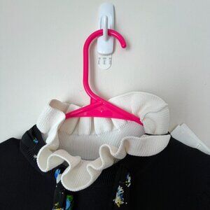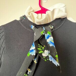 Black Dress with multi-color scarf intertwined in material. White collar. Size Small - BNWT