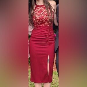Red dress zipper back. Worn once for a wedding. No rips or tears