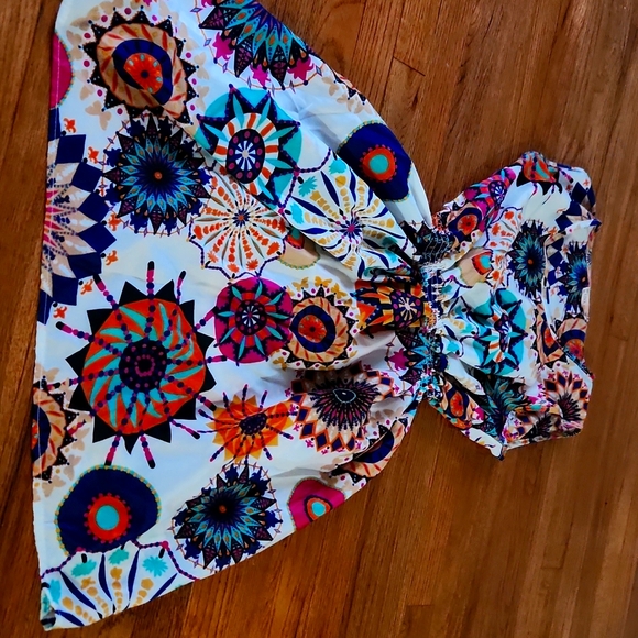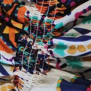 midi dress art design scurched in the middle covered back lightweight colorful