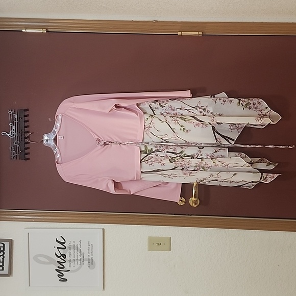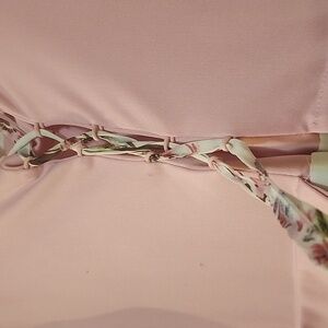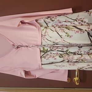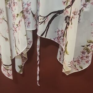2X hi low dress 3 quarter length sleeves tie front fir cleavage exposure sheet plink green & cream are the Cities flower print