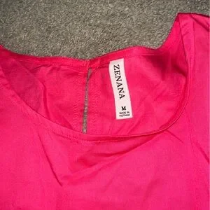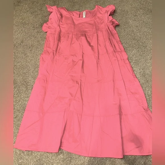 Charming pink dress with ruffled sleeves, perfect for any occasion. Comfortable and stylish. Brand is Zenana, size medium