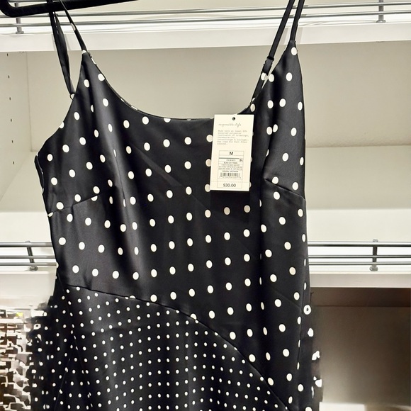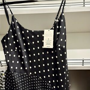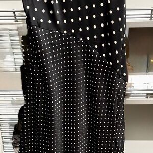 Midi dress. Black with white dots. Soft feeling. Smooth slit on side. Tags still on dress