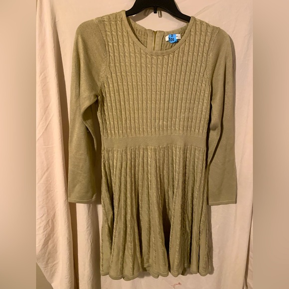 Stylish knit dress with a ribbed design. Features long sleeves and a round neckline. Perfect for casual outings.