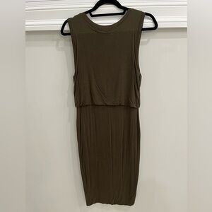 Army green colored dress. Sleeveless and knee length. Size S. Leith brand. One piece but looks like two.