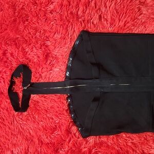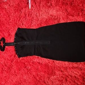 Black stretch dress with zipper at back and choker