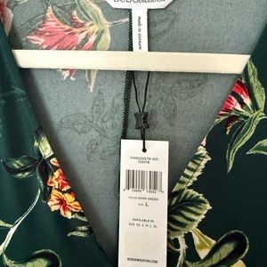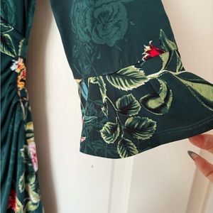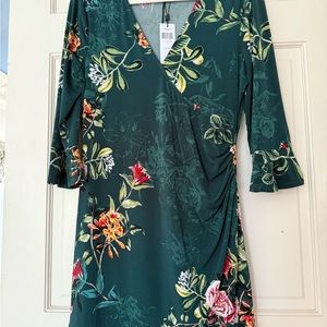 Very flirty shirred waist, very feminine pullover style dress with V-neck with a flouncy bottom, three-quarter length sleeves
