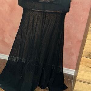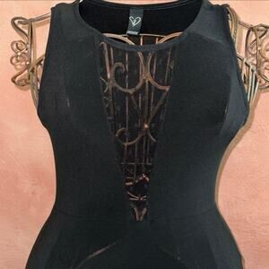 Cute black mesh detailing on chest and halfway down the shirt part