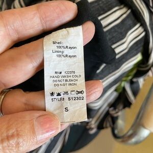 Black striped dress. Super cute with 2 side slots. Very flattering and lined dress. Worn 3 times.