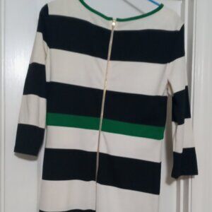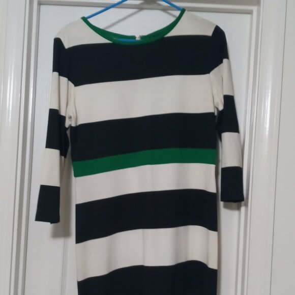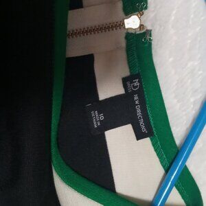 Knee length color block dress. Wide gold zipper.