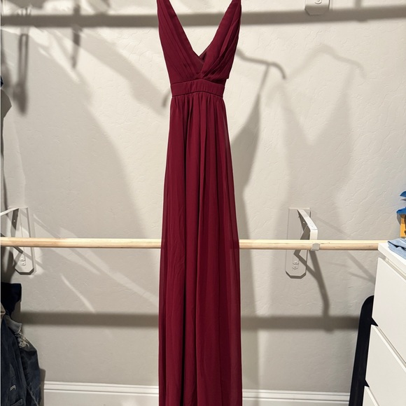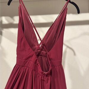 This elegant burgundy evening gown is perfect for any formal occasion. Its rich color and sophisticated design make it a standout choice for special events.