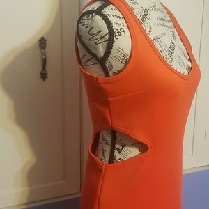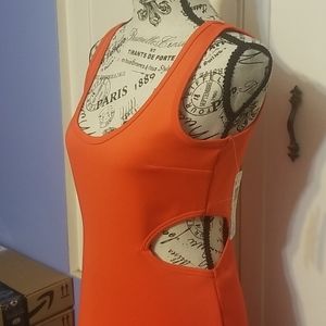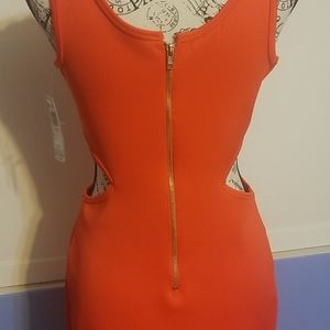 Orange dress with sides out. Nwt! Unique and sexy.. very soft material. Gold zipper in the back. Smoke and pet free home.