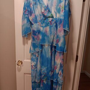Ankle length chiffon polyester bohemian blue dress layers. Size 2xl