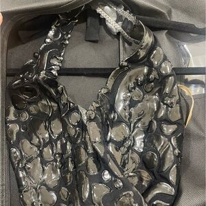 BRAND NEW. Not worn. Leather patches, black, small size, sip up, mermaid tail. Side cut tail. Fits xs-s