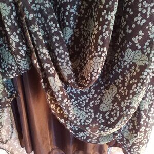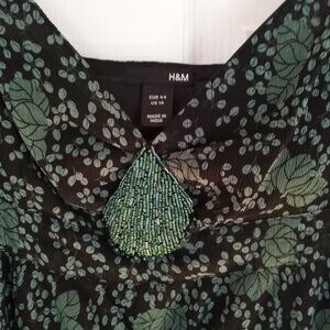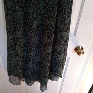 Tank style top with beaded detail on the front. Outer layer is a shear material lined with black. Length is 49".
