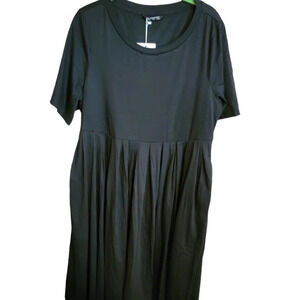New size 12 black dress. 21 in pit to pit, 41 in long,10.5 in sleeves. Polyester, rayon, spandex materials.