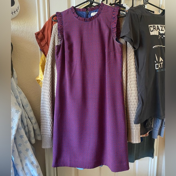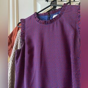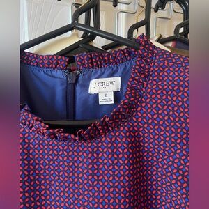 J. Crew patterned dress Red and blue Ruffles cap sleeves Size 2, true to size Perfect condition Zips and hooks in the back