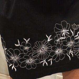 Size 10 black dress with embroidery. This is thick nice stretchy material. In great condition it’s just too big now.