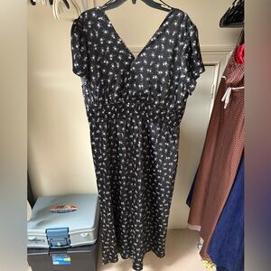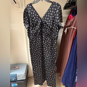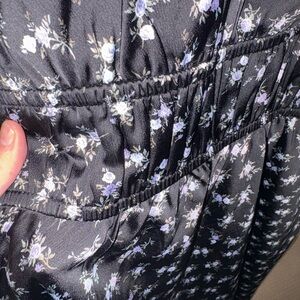And Now This (Macys) black & purple floral satin dress with lace trim & cinched waist