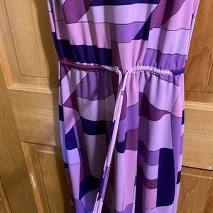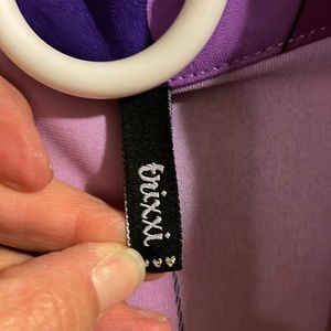 A block purple Trixie dress. Sleeveless with a collar. Drawstring in the back. Slit is in the front.
