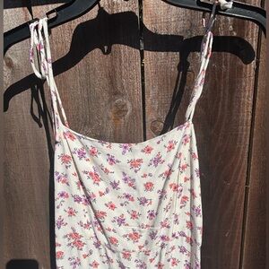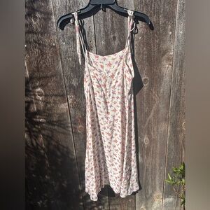 White and pink floral mini dress with adjustable straps #minidress ties at the top of the shoulders urban outfitters floral dress boho bohemian wedding dress special occasion Lolita babydoll 90s festival cami dress peignoir lingerie dainty kawaii girly flirty