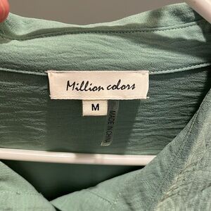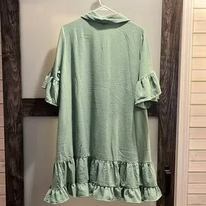 This dress is a beautiful color, it has pockets and a ruffle hem.