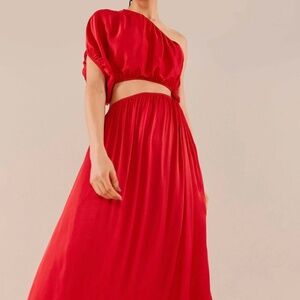 Red long dress one shoulder