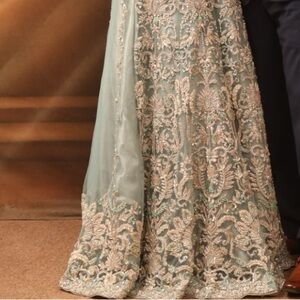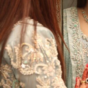 This exquisite dress showcases delicate embroidery on a beautiful pastel fabric, ideal for weddings and special occasions.