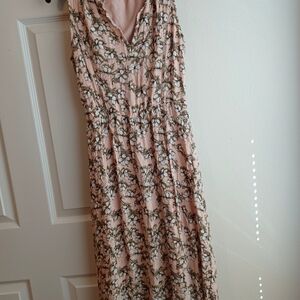 Gorgeous dress Size S By Maison Jules in pastel pink color with white flowers and soft green leaves