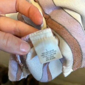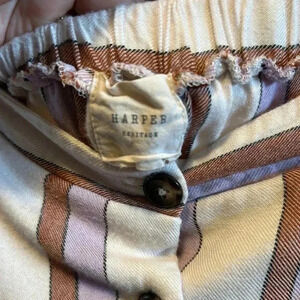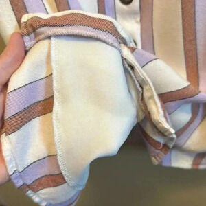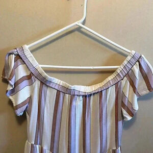 Harper heritage dress with cute button detail down the front. Cream colored with purple and rust colored stripes.